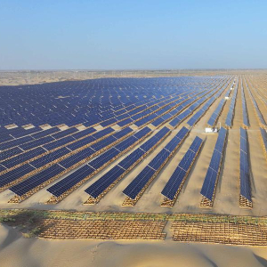 这座光伏电站位于塔克拉玛干沙漠东北部,装机容量300兆瓦,属于我国第一批以沙漠、戈壁、荒漠地区为重点的大型风电光伏基地项目。