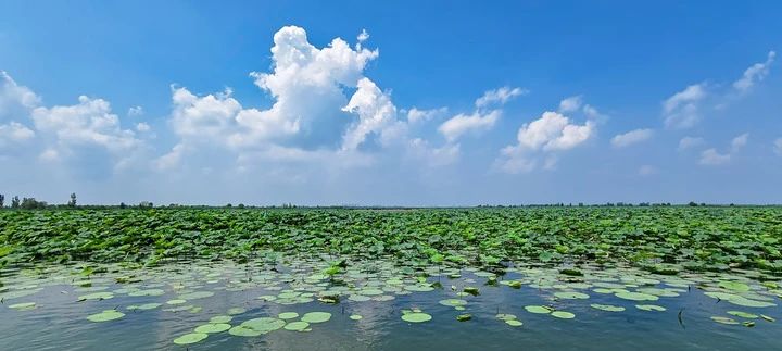 有那好奇心强的游客,乘一叶扁舟,撞入荷花深处,忍不住摘下几朵荷花拍照,或是拿起一片荷叶,盖在头上遮阳。在他们旁边,有一两叶小舟显得格外淡定,缓缓游于莲叶间。