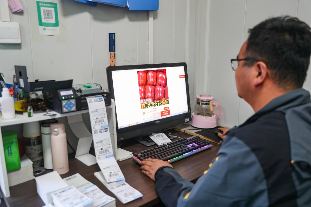 在礼县永坪镇永坪村,31岁的电商“新农人”白亚龙正在打印当日客户订单。新华社记者 郎兵兵 摄