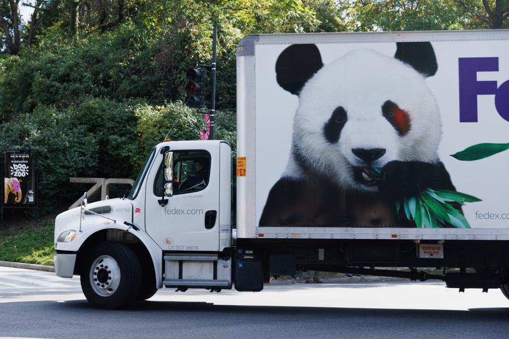 10月15日,在美国首都华盛顿,运送大熊猫的卡车即将驶入动物园。新华社发(亚伦摄)