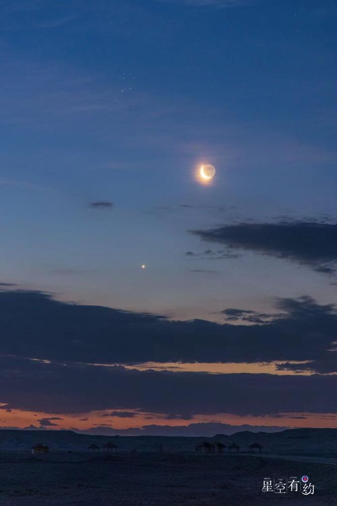 2022年6月26日在新疆哈密大海道拍摄的月伴昴星团。(戴建峰摄)