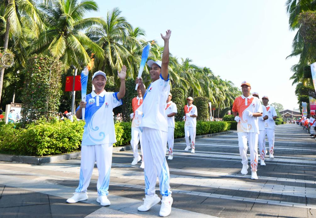 10月9日,中华人民共和国第十二届少数民族传统体育运动会火炬点燃暨火炬传递启动仪式在三亚市天涯海角举行。新华社记者 杨冠宇 摄