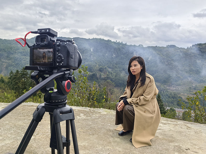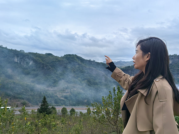 杨妞花介绍她小时候记忆中的大山。新华社记者 胡星摄