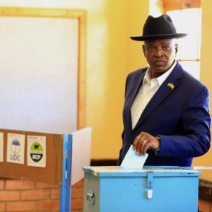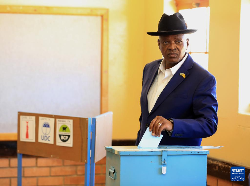 10月30日,博茨瓦纳现任总统、民主党候选人马西西在南部区莫舒帕村的一处投票站投票。新华社发(恩古贝瓦纳摄)