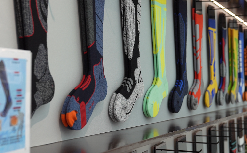 “今年,我们针对各年龄段和不同滑雪爱好者的需求,进行冰雪袜的设计和研发。同时我们拓宽了销售渠道,消费者不仅可以在滑雪场内购买到我们的产品,也可以通过线上网点和直播间选到心仪的冰雪袜。”辽源北方袜业集团织袜公司销售经理白春伟说。