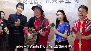这首脍炙人口的《幸福嘹嘹啰》就是根据嘹啰山歌的特点创作的,如今已经成为了蟠龙社区的明星单曲。歌曲创作者赵羽说,音乐就是很神奇的钥匙,在唱一首歌的时候,大家就是一家人。