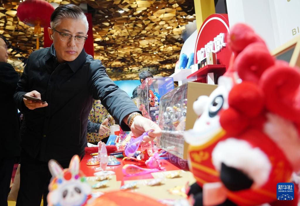 11月19日,参观者在参观“蛇墩墩”系列新品。新华社记者 张晨霖 摄