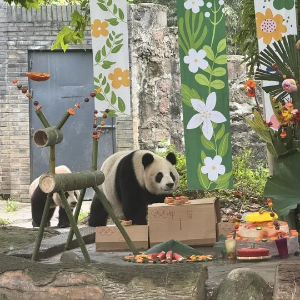 2024年9月,中国大熊猫保护研究中心雅安碧峰峡基地为熊猫们精心准备了“礼物”。新华社记者薛晨 摄