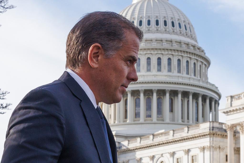 2023年12月13日,在美国华盛顿,美国总统拜登的儿子亨特·拜登举行记者会后从国会大厦前经过。新华社发(亚伦 摄)