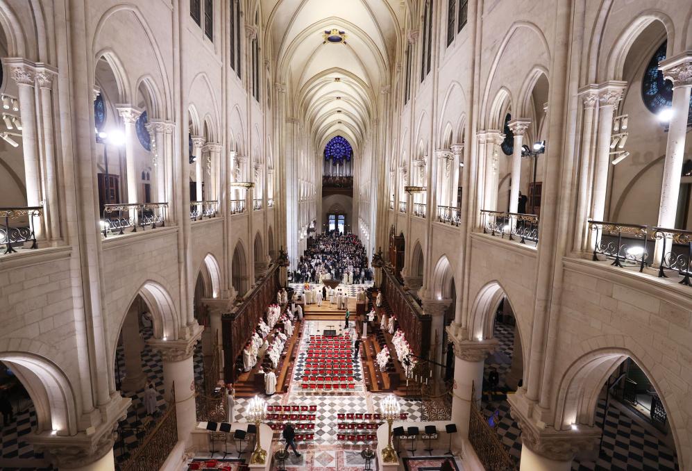 这是2024年12月8日在重新开放仪式上拍摄的巴黎圣母院内景。新华社记者 高静 摄