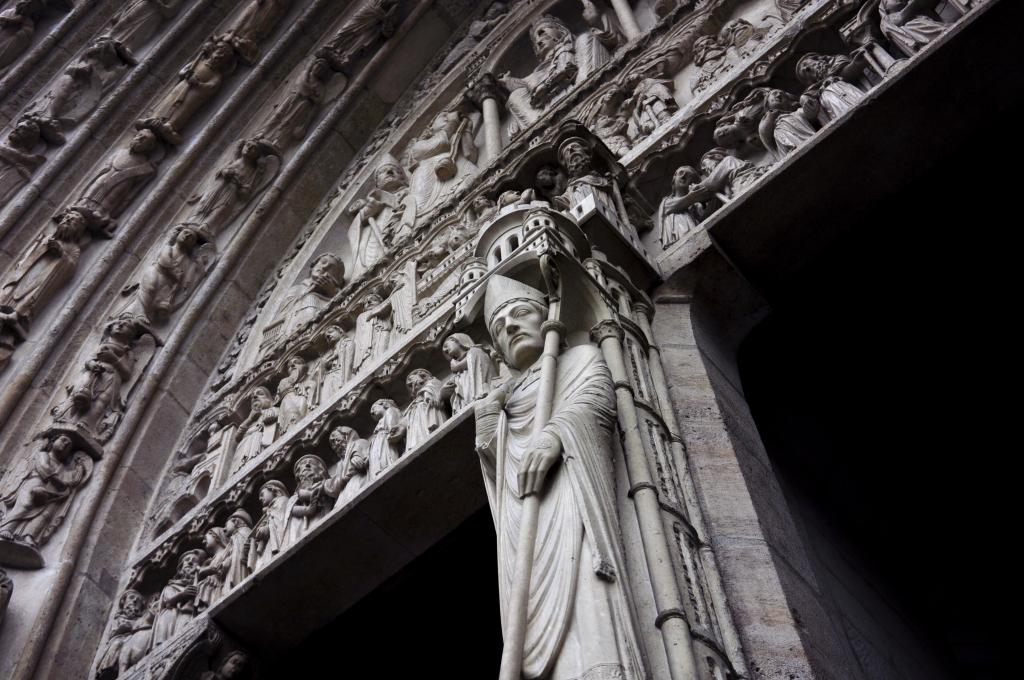 这是2013年10月11日拍摄的巴黎圣母院雕塑。新华社记者 刘潇 摄