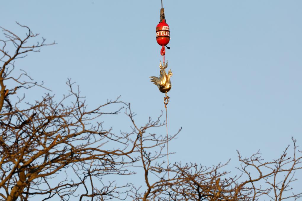 这是2023年12月16日拍摄的准备安装在巴黎圣母院塔尖的公鸡像。新华社发(里特·埃斯 摄)