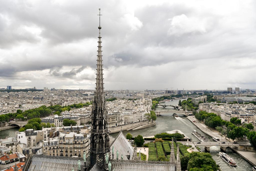 这是2017年6月30日拍摄的巴黎圣母院尖塔及巴黎风光。新华社记者 陈益宸 摄
