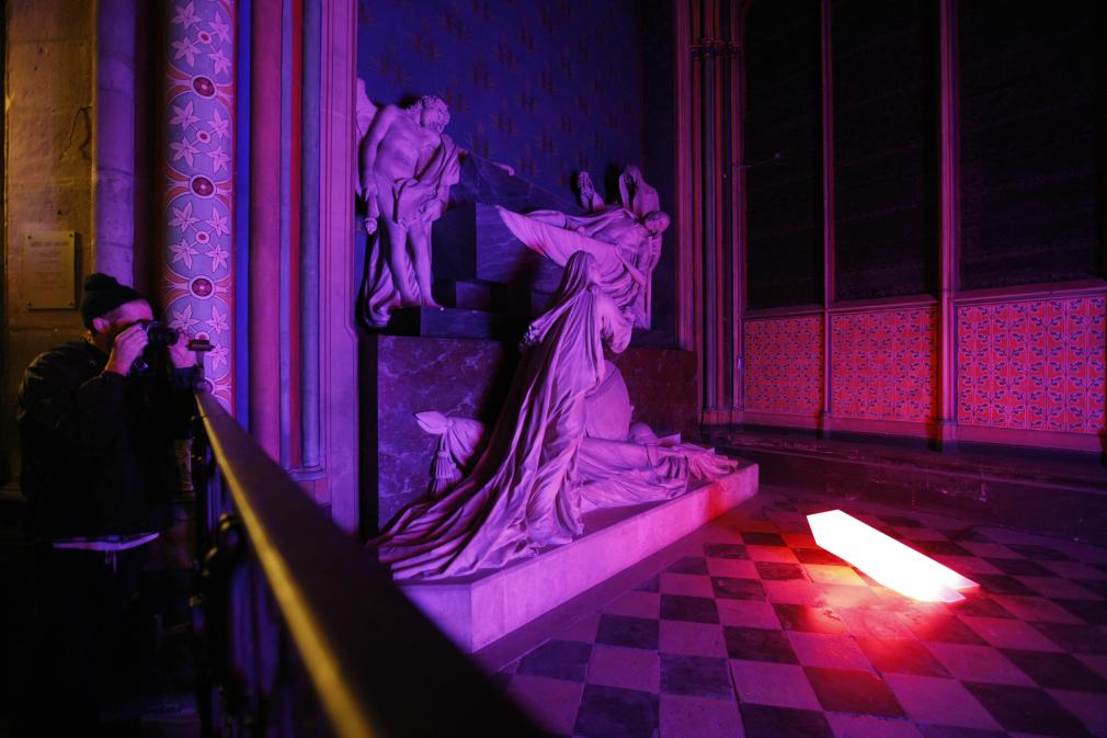 2009年10月3日,在巴黎圣母院,游客拍摄由瑞士艺术家创作的装置作品。新华社记者 张玉薇 摄