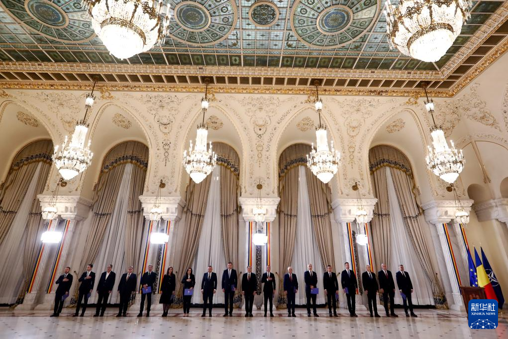 12月23日,在罗马尼亚首都布加勒斯特总统府,罗马尼亚新政府成员出席宣誓就职仪式。新华社发(克里斯泰尔摄)