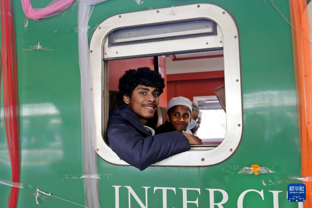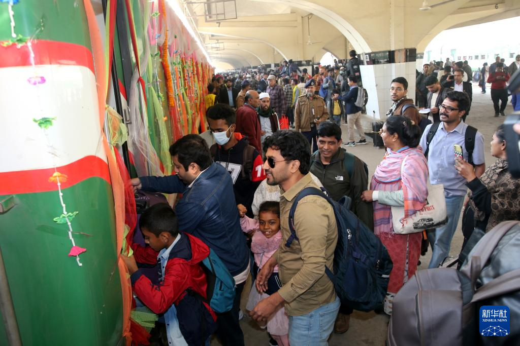 12月24日,人们乘坐帕德玛大桥铁路连接线全线通车后的首班列车抵达孟加拉国首都达卡。新华社发(拉赫曼摄)