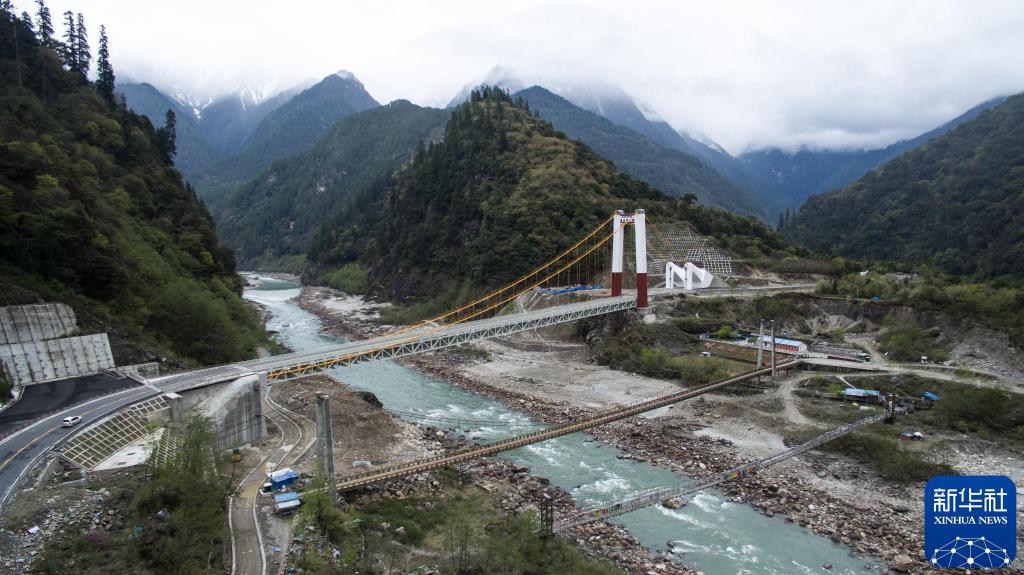 2016年3月29日拍摄的刚建成的通麦大桥。“通麦天险”路段位于西藏波密县和八一镇之间,这里是整个川藏公路线最险的一段。2012年开始,“通麦天险”被纳入川藏公路线改造计划。2016年4月13日正式通车。新华社记者 普布扎西 摄