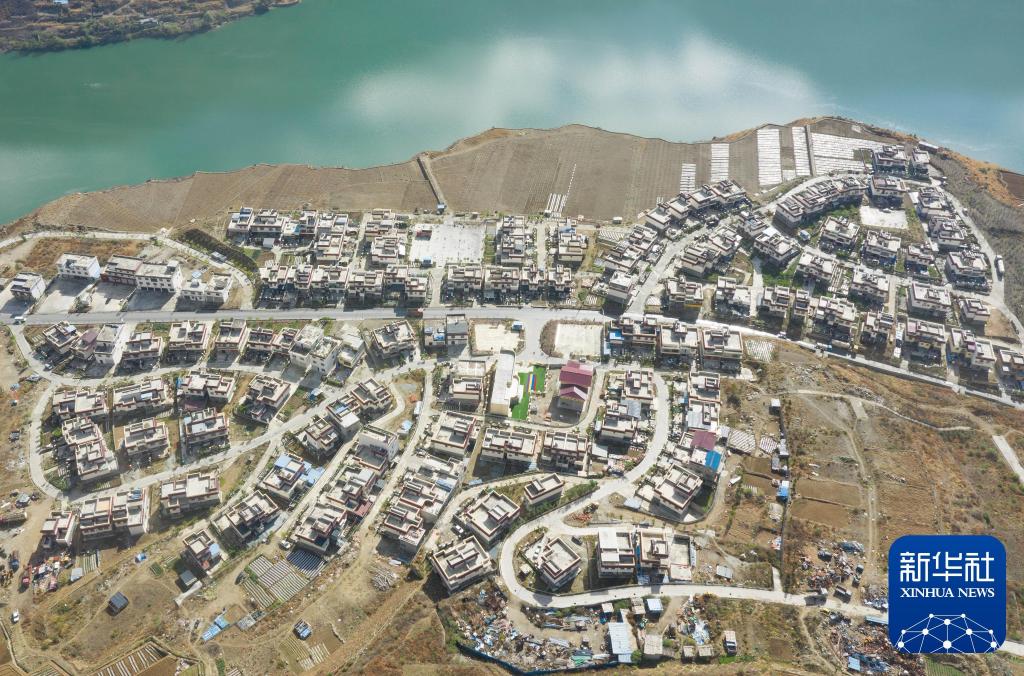 2019年4月16日,在川藏公路沿线的四川泸定县泸桥镇咱里村,移民新村面貌一新(无人机照片)。新华社记者 江宏景 摄