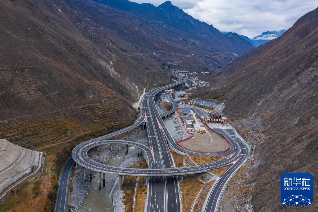 这是2020年12月20日拍摄的汶马高速桃坪互通(无人机照片)。新华社发(阿坝州委宣传部供图)
