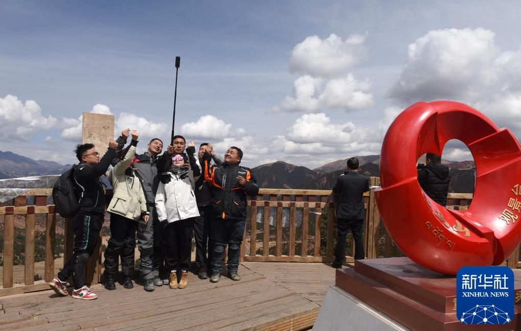 2021年5月2日,在西藏芒康县拉乌山,骑行摩托的年轻人在一起合影。新华社记者 陈燮 摄