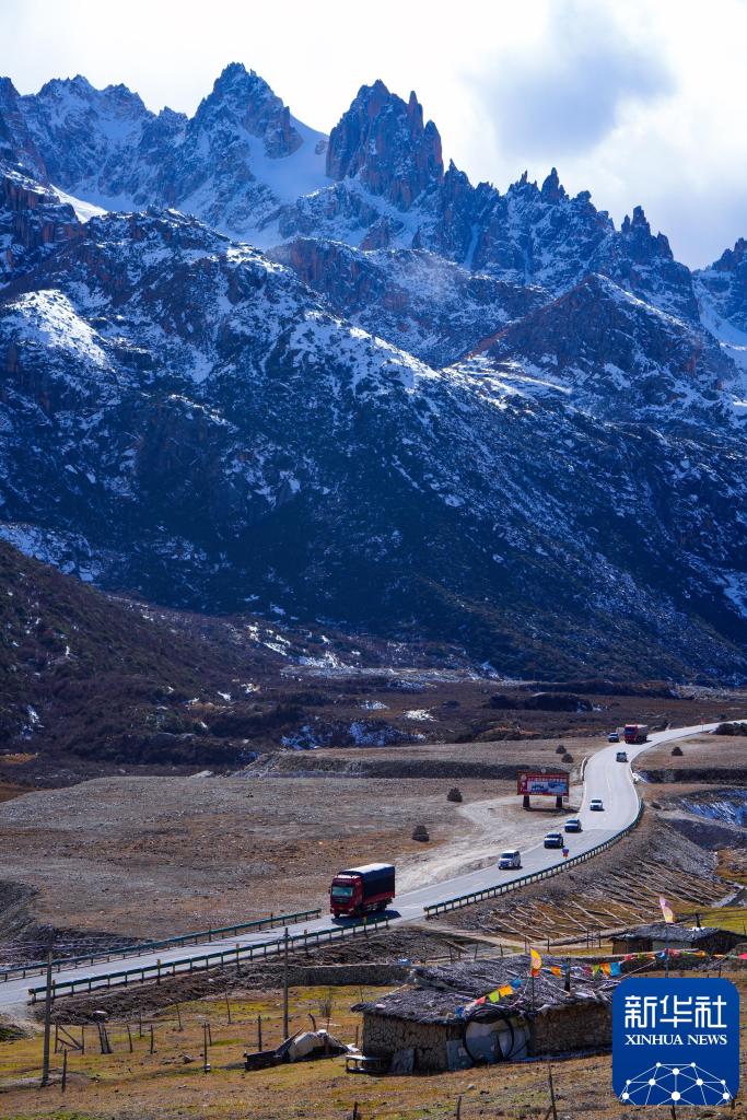 2024年11月1日,在四川省甘孜藏族自治州德格县,车辆穿过雀儿山隧道后行驶在川藏公路上。新华社记者 沈伯韩 摄