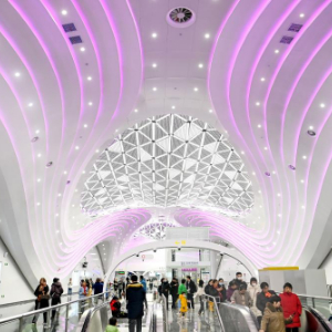 “东面春之绿,南面夏之红,西面秋之金,北面冬之蓝”,8号线在不同区域采用的色彩体系让乘客眼前一亮;无柱穹顶车站、主题文化长廊等8个特色车站呈现出的地下建筑美学,也吸引乘客驻足流连。