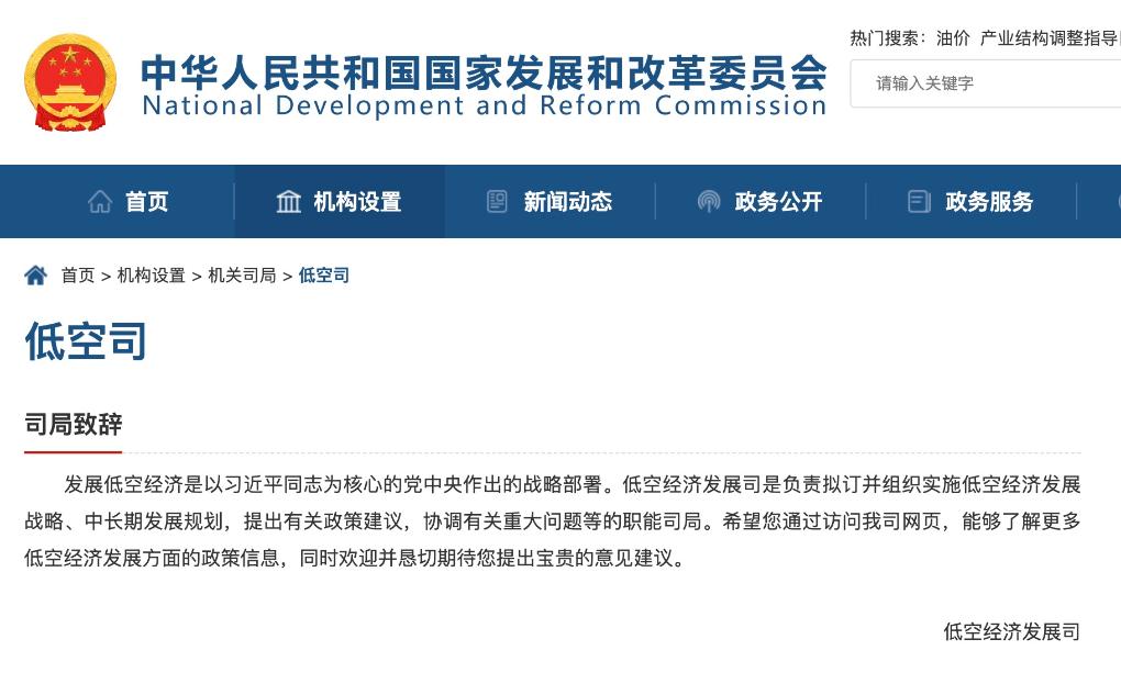 国家发展改革委成立低空经济发展司