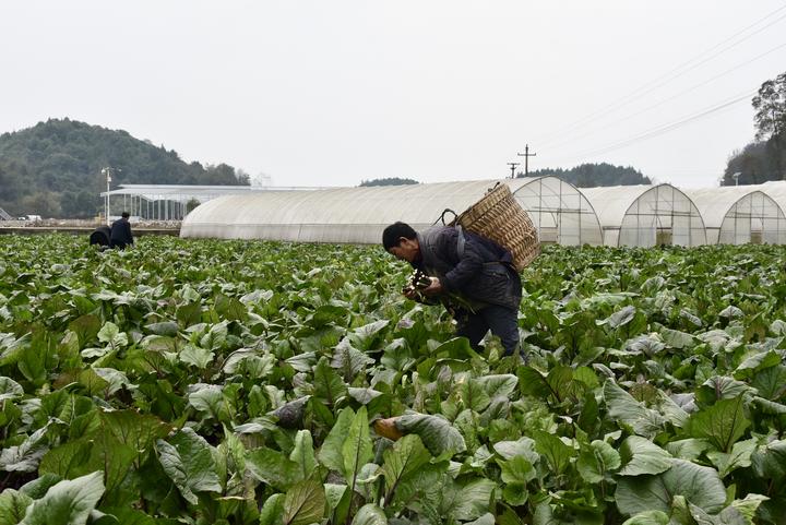 村民在贵州凤冈县绥阳镇玛瑙村蔬菜基地里采摘蔬菜。新华社记者李凡 摄