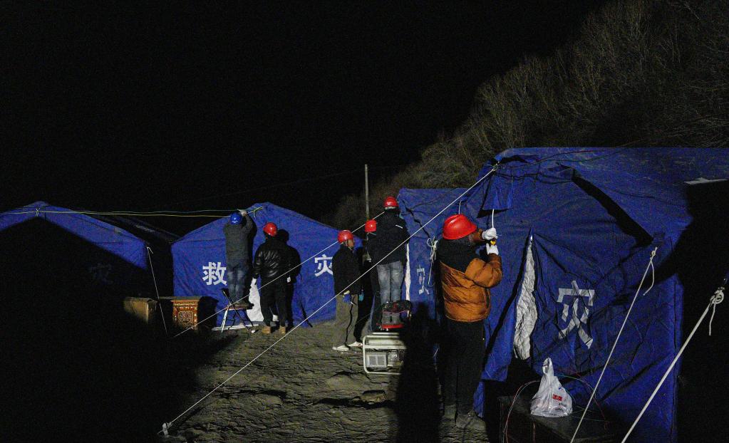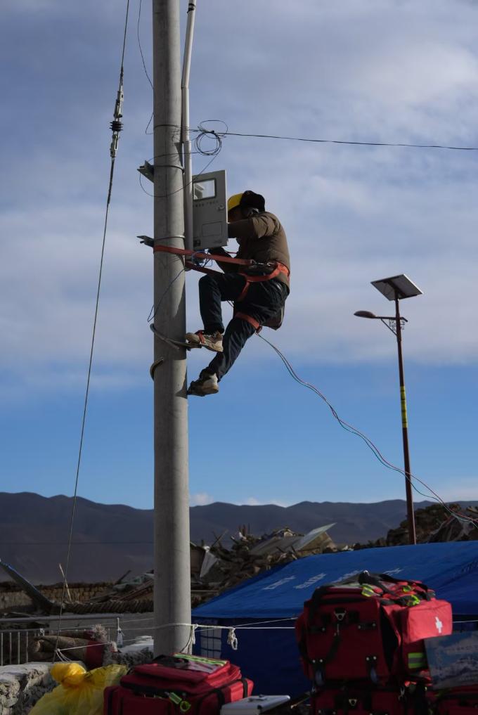 1月7日,在定日县长所乡集中安置点,工作人员在保障电力供应。新华社记者 晋美多吉 摄