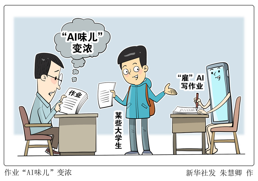 随着人工智能大模型应用普及,不仅是论文,近年来大学生作业中的“AI味儿”也变浓了:使用AI工具,仅需几分钟即可生成一份看起来符合要求的作业内容。用AI工具写作业情况如何?怎样在效率与创造力中找到平衡?“新华视点”记者进行了调查。