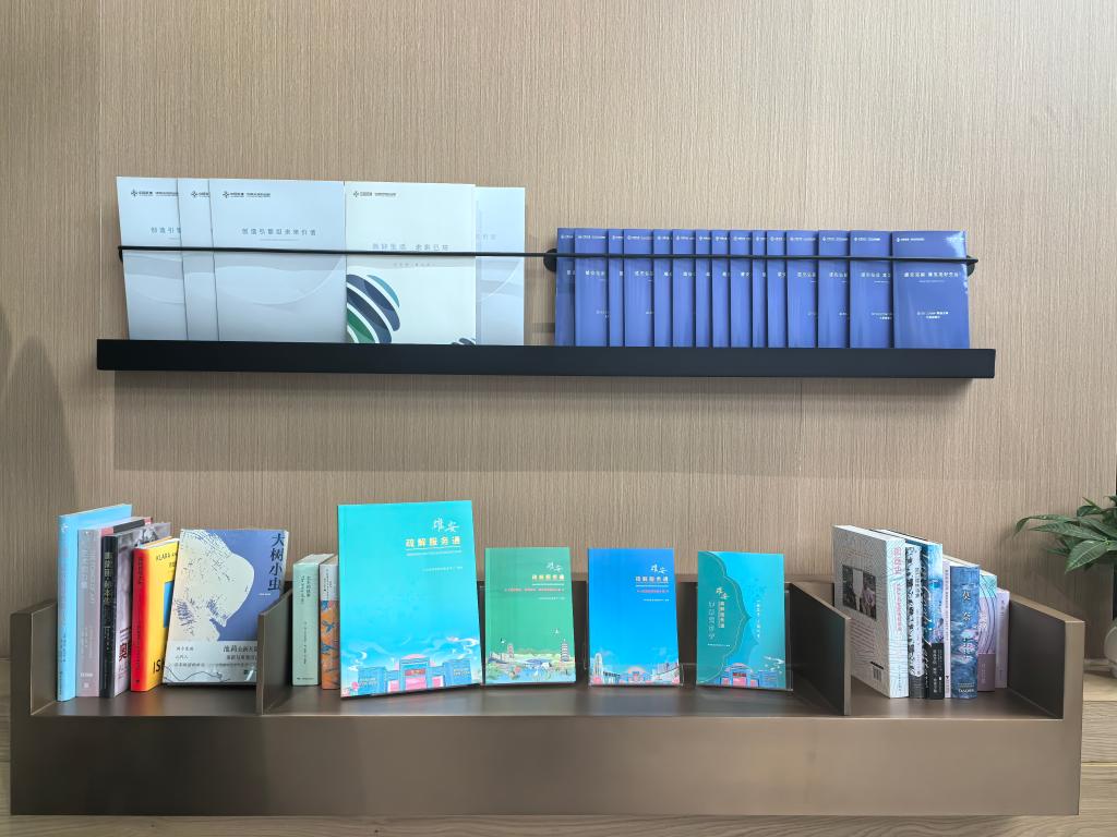 雄安新区一座大厦内摆放的《雄安疏解服务通》手册和其他书籍。新华社发