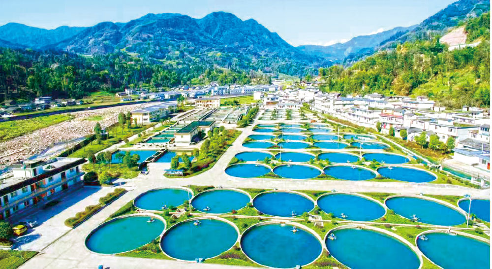 在四川省天全水产现代农业园内,上百个圆形流水鱼池依河而建。图片由天全县委宣传部提供。