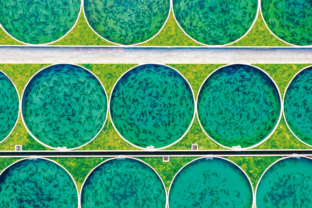 天全水产现代农业园,上百个依河而建的圆形流水鱼池中,鲟鱼正在游曳。图片由天全县委宣传部提供。