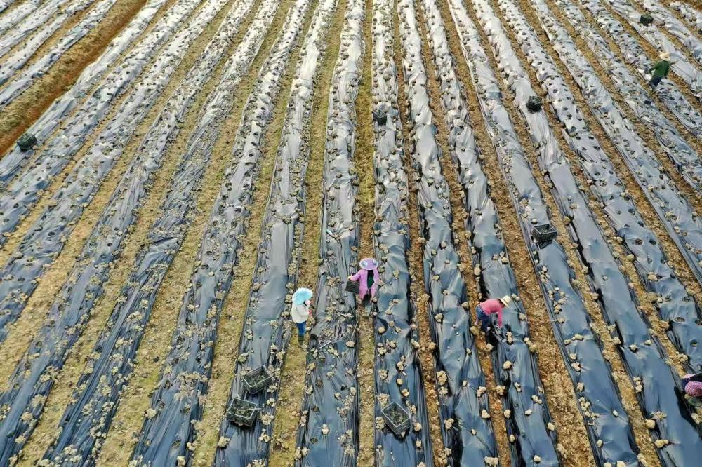 在江西省抚州市金溪县合市镇车门村芳樟基地,当地农民种植芳樟幼苗。邓兴东摄
