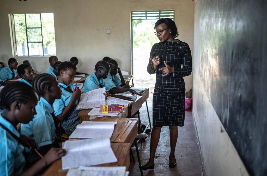 2024年6月18日,在肯尼亚图尔卡纳郡卡库马难民营内,毕生希望女子中学的学生在教室内上课。