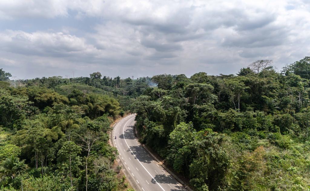 刚果河畔,由布拉柴维尔延伸至大西洋岸的刚果(布)国家一号公路,穿越山地密林,全长536公里,让天堑变通途,从布拉柴维尔到黑角之间单程用时从原来的一周缩短至6个小时。