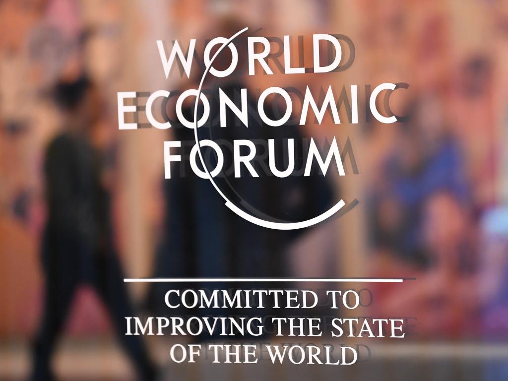 这是2025年1月20日在瑞士达沃斯拍摄的世界经济论坛标识。新华社记者连漪摄