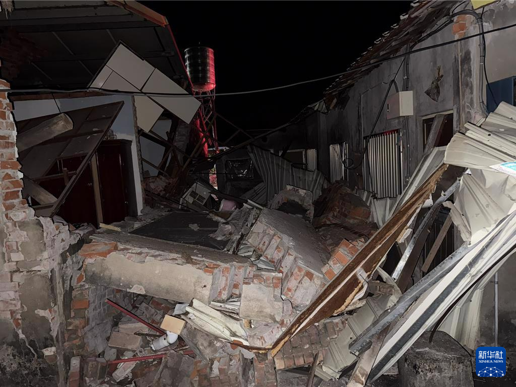 1月21日拍摄的台南市楠西区中兴路一处受损的民宅。新华社发(台湾中时新闻网供图)