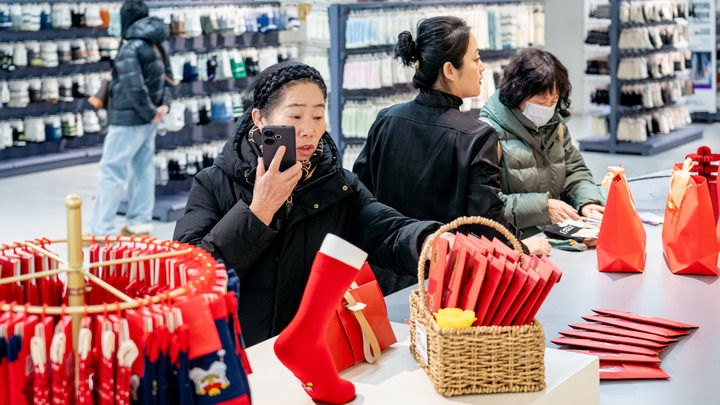 眼下,欢快的《恭喜发财》歌,又一次在全国各地超市唱响。北京胡同挂上大红灯笼,广东集市摆开“利是糖”,东北铁锅蒸起黏豆包,安徽马头墙下晒着香肠腊肉,云南铺子亮出年宵花……天南海北、万花筒般令人眼花缭乱的年货,在思念与祝福中流转,年味渐浓、渐厚。