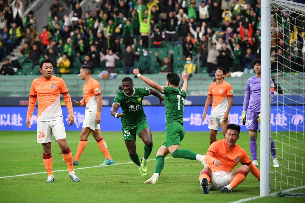 2024年10月19日,北京国安队球员法比奥(左三)在2024赛季中国足球协会超级联赛第28轮比赛中庆祝进球。新华社记者 鞠焕宗 摄