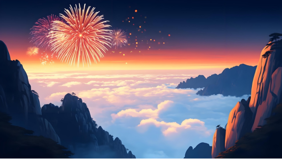 吕自瑞用AI软件生成的黄山云海烟花图。新华社发