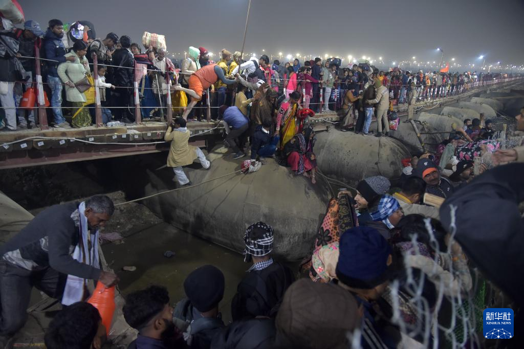 1月29日,在印度北方邦普拉亚格拉杰市,人们在踩踏事件发生后聚集在一座桥上。新华社发