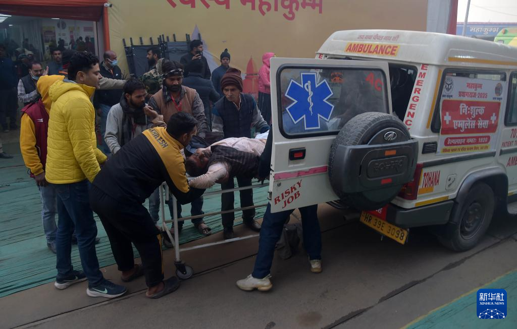 1月29日,在印度北方邦普拉亚格拉杰市,伤员被运送至医院接受治疗。新华社发