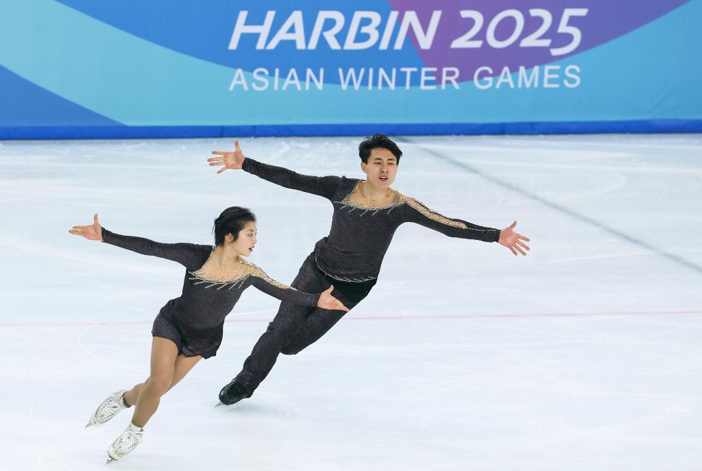 “我们(廉太钰/韩锦澈组合)是第一次参加这么大型的国际赛事。非常感谢亚冬会的工作人员,感谢大家一直为我们鼓舞和加油。到现在为止,我们为亚冬会做了很久的训练、付出了很多。我们在如此大型的赛事中学习了很多,也积攒了不少经验。中国的观众们一直在为我们加油,这为我们获得银牌这个好成绩贡献了很多力量。”女选手廉太钰说。