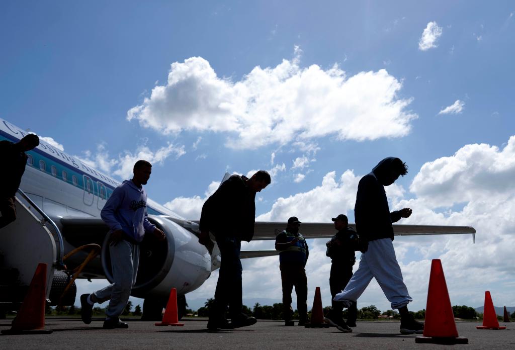 快中午时,又一架载着被美国遣返移民的航班降落。