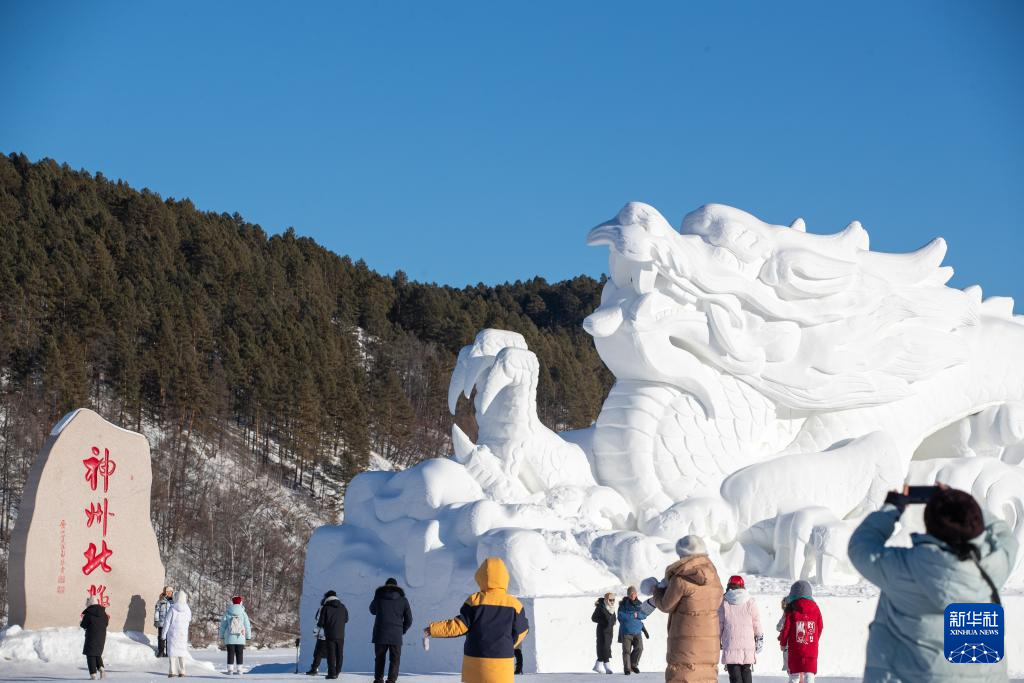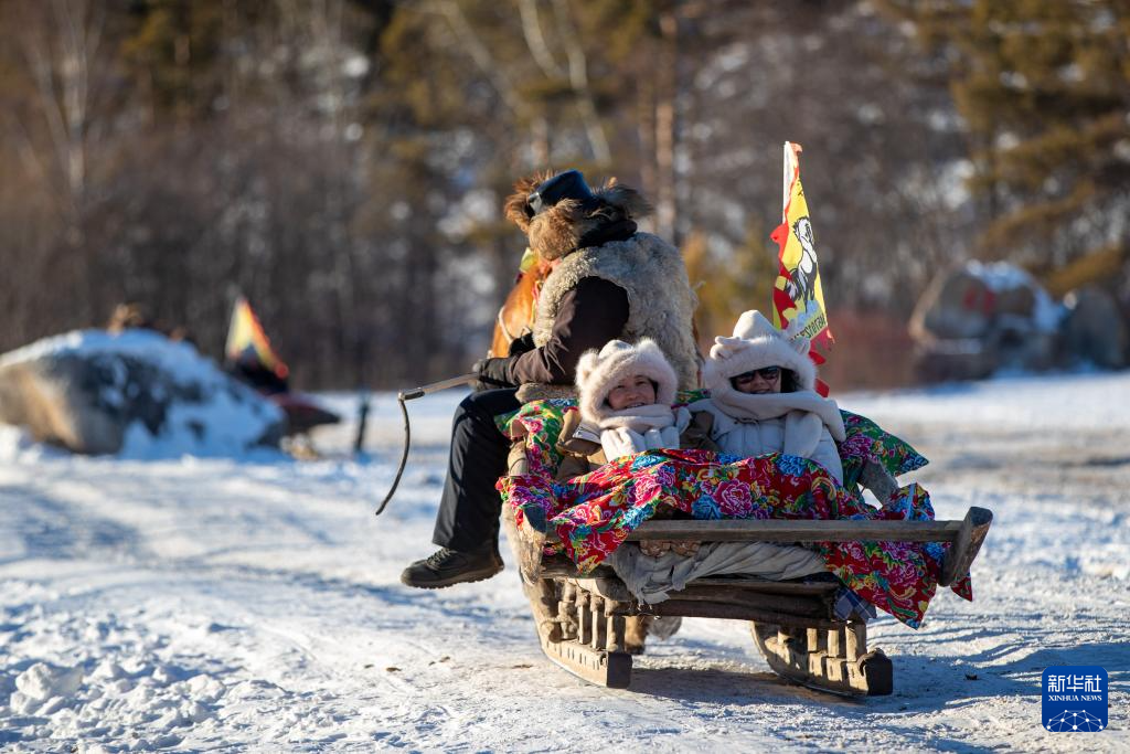游客在漠河市北极村游玩(2024年2月2日摄)。新华社记者 张涛 摄