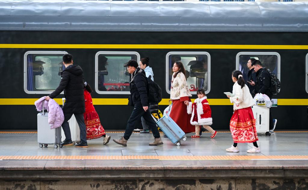 2月4日,旅客在南昌火车站准备登上列车。新华社发