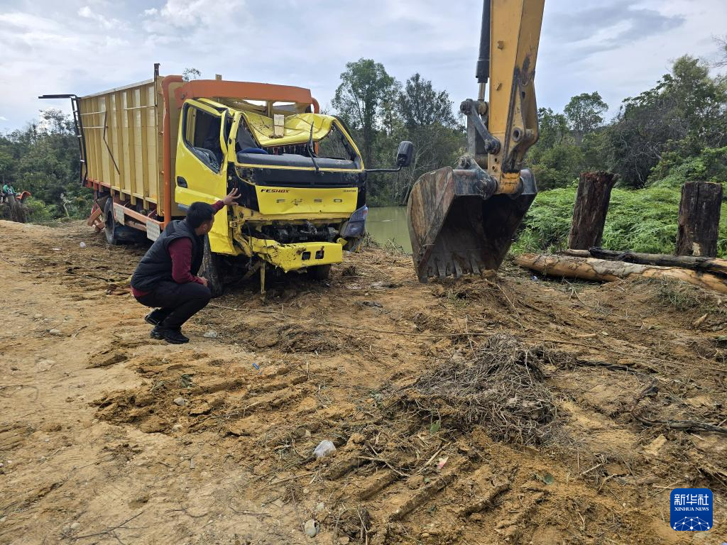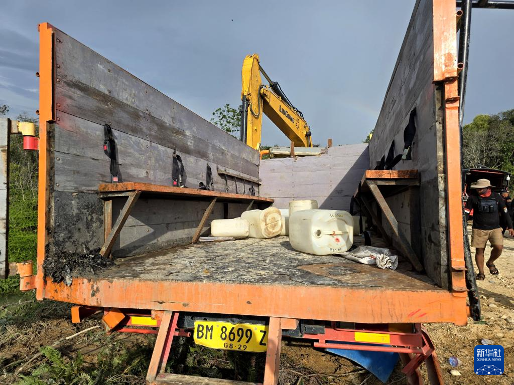 这是2月24日在印度尼西亚廖内省珀拉拉万县拍摄的打捞出的事发货车。新华社发(北干巴鲁市搜救办公室供图)