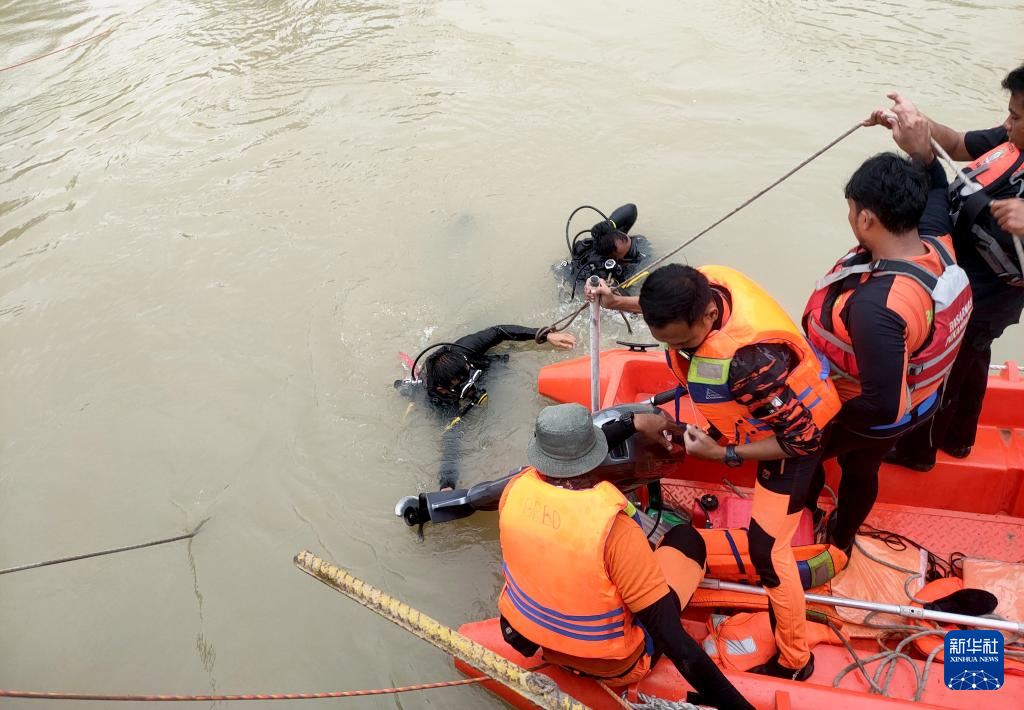 2月24日,在印度尼西亚廖内省珀拉拉万县,搜救人员打捞遇难者遗体。新华社发(北干巴鲁市搜救办公室供图)