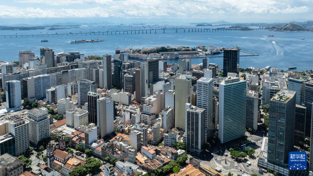 这是3月7日在巴西里约热内卢拍摄的市中心商业区和瓜纳巴拉湾(无人机照片)。 新华社记者 王天聪 摄